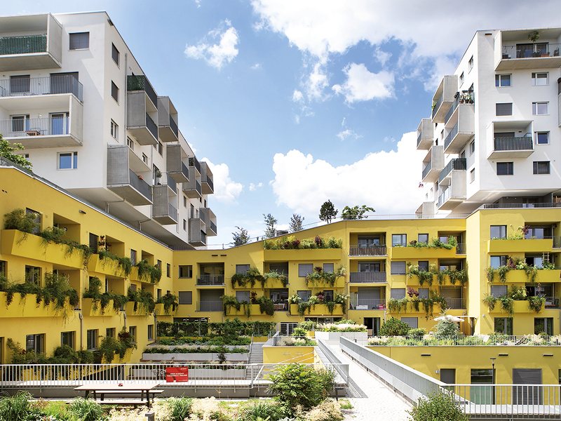 Schneewittchen will in erster Linie mit Nachhaltigkeit überzeugen. Beginnend bei der wertschaffenden Architektur umfasst das Konzept eine zentrale, über Fernwärme bzw. Fernkälte versorgte Heizung und Kühlung, sowie Photovoltaikanlagen auf den Dächern. Die Mietwohnungen wurden mit Bauteilaktivierung errichtet und das Gebäude mit einer extensiven Dachbegrünung versehen. Sowohl bei Schneewittchen als auch im benachbarten Loftflügel (Architektur: StudioVlayStreeruwitz) sind die Betondecken in den Wohnungen thermisch aktiviert. „Die Aufenthaltsräume sowie das Bad sind mit thermischer Bauteilaktivierung ausgestattet, die entsprechende Regelung erfolgt über ein Thermostat. Die Gemeinschaftsräume werden über Fußbodenheizung beheizt“, so Thomas Fischl, technischer Leiter der EGW, die als Bauherrenvertretung für die Generalplanung und Baubetreuung verantwortlich war und die Wohnanlage verwaltet. „Energieeffizienz und Werthaltigkeit sind für uns generell – und beim Schneewittchen im NordÂbahnviertel im Besonderen – ein großes Anliegen.